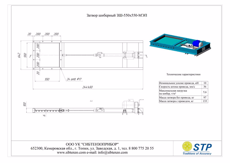 Затвор шиберный 3Ш-550х550-МЭП